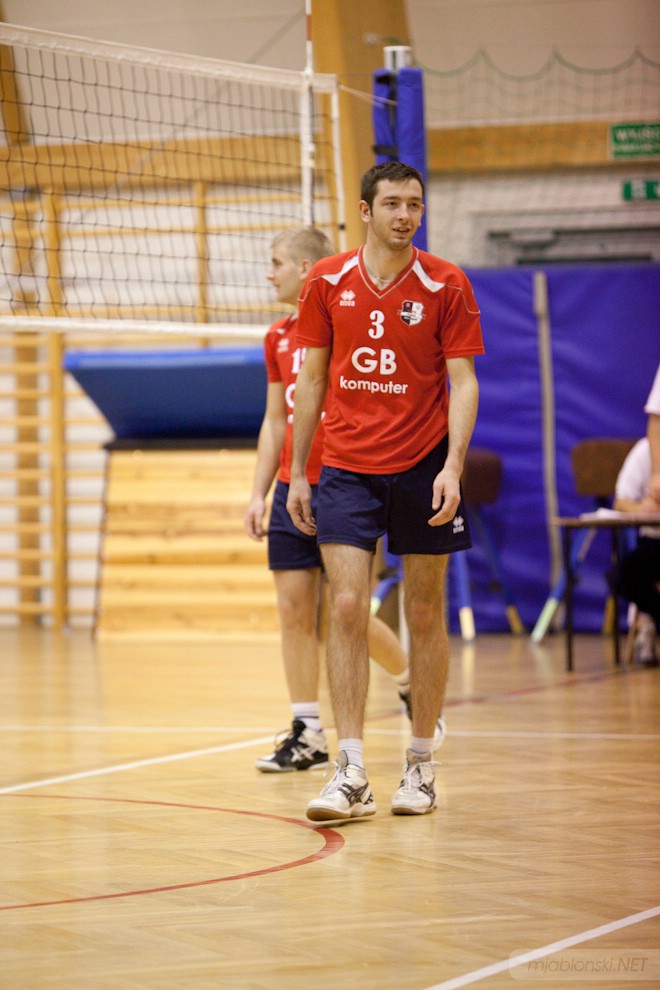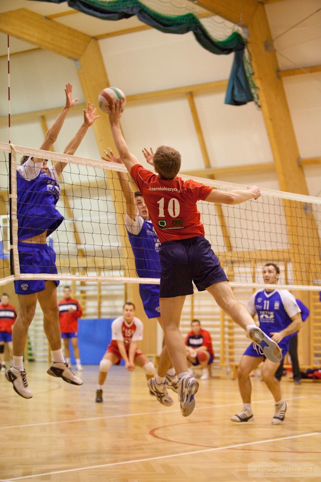 Oleszycanie podbudowani ostatnim zwycięstwem w Rakszawie podeszli do pojedynku bardzo zmotywowani i liczyli na kolejne punkty. Niestety tym razem, ta sztuka im się nie udała, choć zwycięstwo w drugim secie było bardzo blisko. Czarni zagrali bez kontuzjowanego Łukasza Nogi, który ostatnio był etatowym libero drużyny. Bardzo dobrze zastąpił go jednak najstarszy Piotr Hulak. Początek spotkania to dominacja przyjezdnych, którzy szybko wypracowali sobie sporą przewagę. W drugiej części seta gospodarze poprawili nieco swoją grę, ale rywala nie dogonili. Najbardziej wyrównany był drugi set, w którym od początku przeważał zespół z Oleszyc i miał przewagę nawet pięciu punktów. W końcówce Czarni popełnili jednak serię błędów i akademicy zdołali wyrównać. Od stanu 25-25 trwała emocjonująca walka „punkt za punkt”. Oba zespoły miały po kilka piłek setowych w górze. Seta tego wygrali także przyjezdni zdobywając 34. punkt. W trzeciej odsłonie znowu dominowali goście. Mecz był też okazją do oficjalnego przekazania nowych strojów sportowych naszej drużynie przez tytularnych sponsorów obecnego sezonu. Piotr Ozimek, właściciel firmy GB komputer oraz Paweł Kapel, Prezes Powiatowego Banku Spółdzielczego w Lubaczowie przekazali symboliczne koszulki na ręce Piotra Hulaka (Prezesa klubu, trenera) i Tomasza Dworaka (Wiceprezesa Klubu, kapitana). SSPS GB komp Czarni Oleszyce – AZS UR Rzeszów 0-3 (15-25, 32-34, 20-25) Czarni: Mazur, Kasprzyk, Pracało, Dworak, Myśliwy, Ozga, Hulak (libero) oraz Syryło, Stachów.