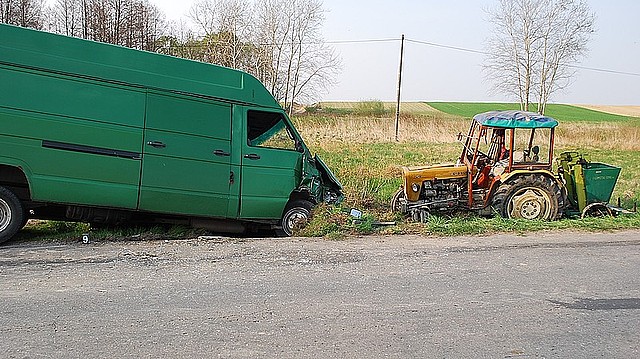 W środę około godzi. 13.30 dyżurny lubaczowskiej komendy został powiadomiony o zdarzeniu drogowym w miejscowości Żuków (gmina Cieszanów). Z relacji zgłaszającego wynikało, że doszło do zderzenia ciągnika rolniczego z samochodem dostawczym.
