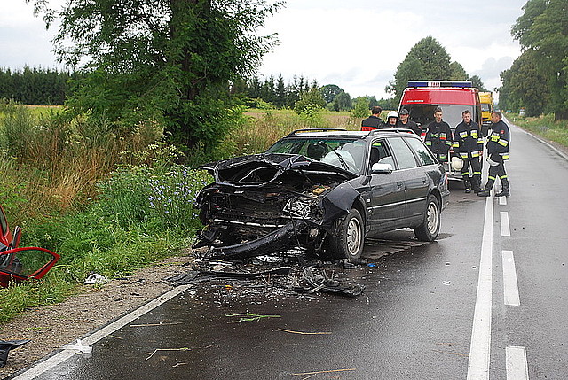 Jak wstępnie ustalili policjanci, kierujący oplem najprawdopodobniej stracił panowanie nad pojazdem, przekroczył oś jezdni, uderzył w jadące z przeciwnej strony volvo, a następnie zderzył się czołowo z audi. Dwie starsze osoby – kobieta i mężczyzna w wieku 85 lat, podróżujący oplem, zginęli na miejscu.