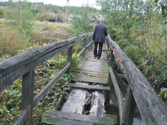 – Ludzie codziennie przechodzą tędy do sklepu, do kościoła, na cmentarz. Idą z duszą na ramieniu, bo w każdej chwili przegniłe deski mogą popękać. Ale nie mają innego wyjścia, bo okrężną drogą wyszłoby z dziesięć kilometrów – narzeka starszy mieszkaniec Bihal.