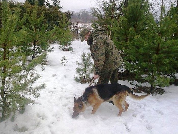 dziwne zeby straznicy i policjanci jechali autem i jednoczesnie pies zeby tropił jadąc