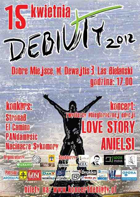 Anielsi zagrają o godz. 19.20 w Dobrym Miejscu na warszawskich Bielanach w ramach koncertu DEBIUTY 2012. Lubaczowski zespół podczas ubiegłorocznego koncertu zdobył nagrodę jury i znalazł się wśród laureatów konkursu. Koncert DEBIUTY jest kontynuacją koncertów MŁODZI BENEDYKTOWI XVI, które w latach 2006 – 2010 odbywały na warszawskich Bielanach. Pierwsza edycja odbyła się 21 maja 2011 roku. W tym roku poza laureatami koncertu Debiuty 2011, w części konkursowej zmierzą się zespoły: El Camino, Strona B, PANdamusic i Nacinacze Sykomory.