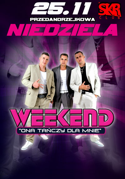W najbliższą niedzielę (25.11), w SKR Club Obsza, z jedynym koncertem w tej części kraju wystąpi zespół WEEKEND, którego hit „Ona Tańczy Dla Mnie” jest najpopularniejszą polską piosenką na liście YouTube 100. Mamy dla Was trzy bilety na tę imprezę!