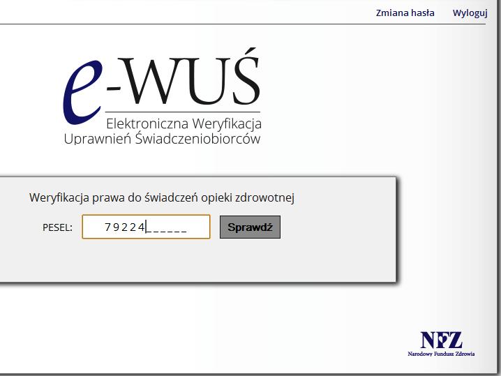 Elektroniczna Weryfikacja Uprawnień Świadczeniobiorców (eWUŚ) ma na celu szybkie stwierdzenie, czy pacjent ma prawo do bezpłatnych świadczeń zdrowotnych. Podczas zapisu na wizytę do lekarza należy rejestratorce pokazać dowód osobisty lub inny dokument tożsamości, a ona na podstawie numeru PESEL elektronicznie połączy się z programem. Za jego pomocą sprawdzi czy pacjent jest ubezpieczony. W przypadku, gdy eWUŚ wyświetli brak ubezpieczenia chory nie jest wysyłany z kwitkiem do domu. Wiedząc, że ma prawo do korzystania z bezpłatnych świadczeń zdrowotnych wypełnia oświadczenie o ubezpieczeniu. W takim wypadku Narodowy Fundusz Zdrowia będzie sprawdzał wiarygodność podanych informacji. Gdy będą one mijały się z prawdą wówczas zażąda od pacjenta zwrotu pieniędzy za leczenie.
