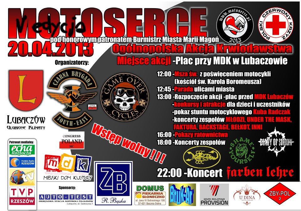 Mszą świętą z poświęceniem motocykli w kościele św. Karola Boremeusza o godz. 12.00 rozpocznie się dziś (20.04) w Lubaczowie Ogólnopolska Akcja Krwiodawstwa „MOTOSERCE”.