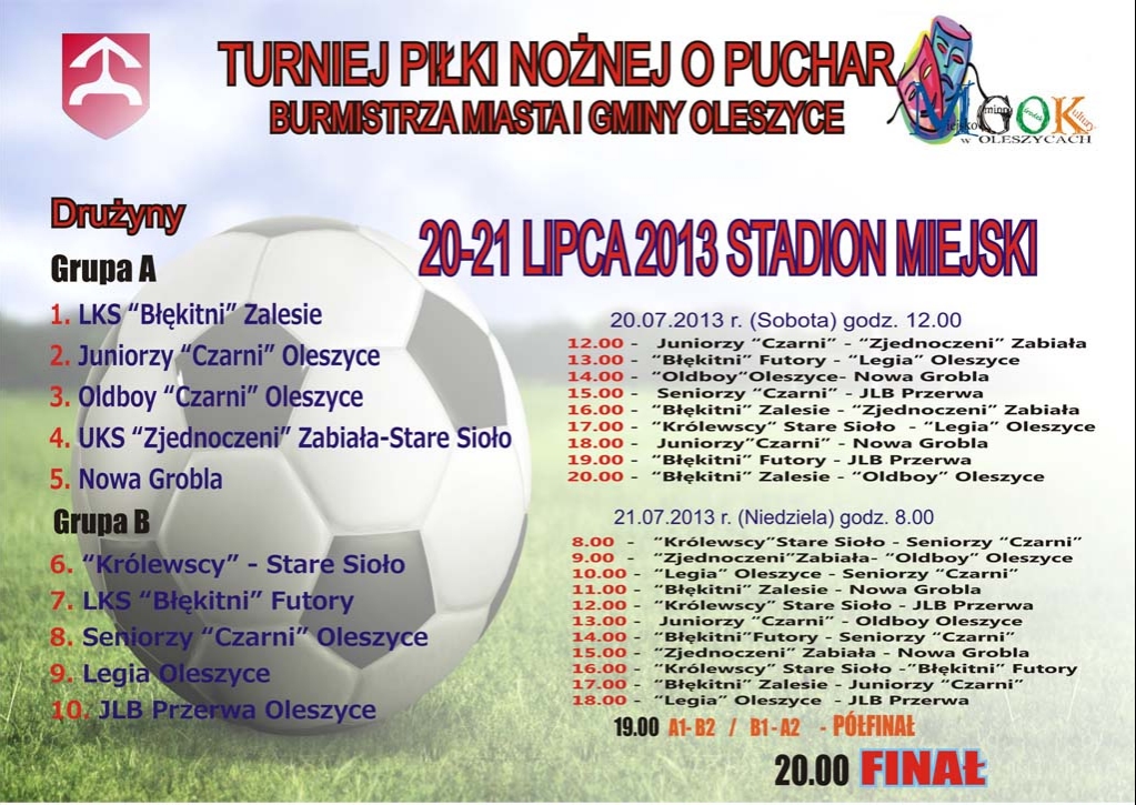 Dziesięć drużyn zgłosiło się do tegorocznego Turnieju Piłki Nożnej o Puchar Burmistrza Miasta i Gminy Oleszyce. Coroczny turniej piłkarski budzi sporo emocji i wyłania najlepszą drużynę piłkarską w gminie.