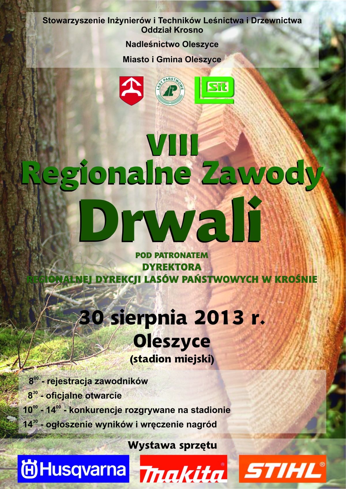 W najbliższy piątek (30.08) na terenie Nadleśnictwa Oleszyce odbędą się VIII Regionalne Zawody Drwali organizowane tradycyjnie przez krośnieński oddział Stowarzyszenia Inżynierów i Techników Leśnictwa i Drzewnictwa przy udziale Regionalnej Dyrekcji Lasów Państwowych w Krośnie.