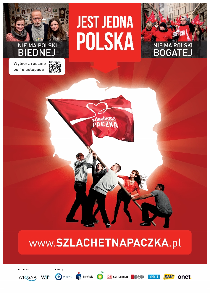 – Tak jak Rodzina Pani Joanny: Pani Joanna (30 l.) na co dzień zajmuje się wychowaniem córeczki Justynki (2 l.) i swoją chorą mamą (75 l.). Jej mąż Pan Łukasz (28 l.) został tak pobity, że dzisiaj jest upośledzony umysłowo w stopniu umiarkowanym. Przyczyną trudnej sytuacji Rodziny jest choroba męża Pani Joanny, która sprawia, że trudno jest Panu Łukaszowi znaleźć jakąkolwiek pracę. Pani Joanna stara się jak może wspierać swojego męża, pomagać niepełnosprawnej mamie oraz wychowywać córeczkę. Przy dochodzie 154 zł na osobę ledwo wiąże koniec z końcem. Spłaca dodatkowo kredyt, który zaciągnęła ze względu na stan zdrowia swojej mamy, aby mogła poruszać się za pomocą chodzika. Wśród największych potrzeb Rodzina wymienia żywność, środki czystości oraz odzież – czytamy na stronie Szlachetnej Paczki