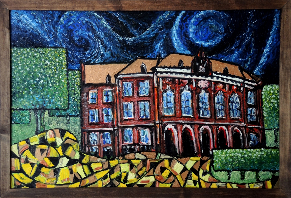 Obraz, stworzony przez Marcina specjalnie na tę aukcję, nawiązuje do 650-lecia Uniwersytetu Jagiellońskiego, jednego z najstarszych i najbardziej prestiżowych uniwersytetów w Europie i przedstawia uniwersyteckie Collegium Novum przy krakowskich Plantach. Widać na nim wiele charakterystycznych elementów jego pracy : skondensowane kolory, delikatne pociągnięcia pędzla i rodzaj mozaiki Klimta.