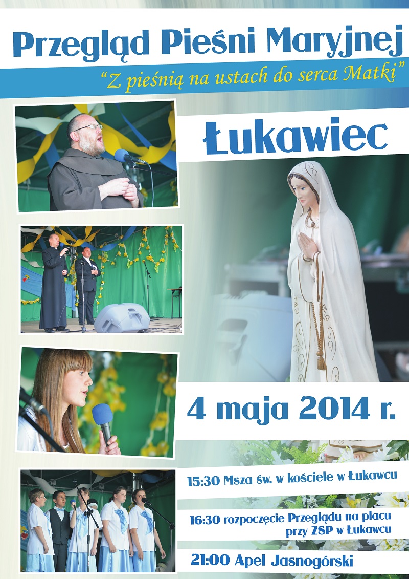 „ Z pieśnią na ustach do serca Matki” – pod takim hasłem już od wielu lat w Łukawcu odbywa się Przegląd Pieśni Maryjnej. Tegoroczna edycja odbędzie się w niedzielę 4 maja. Wezmą w niej udział soliści i zespoły z dwóch diecezji zamojsko–lubaczowskiej i przemyskiej.