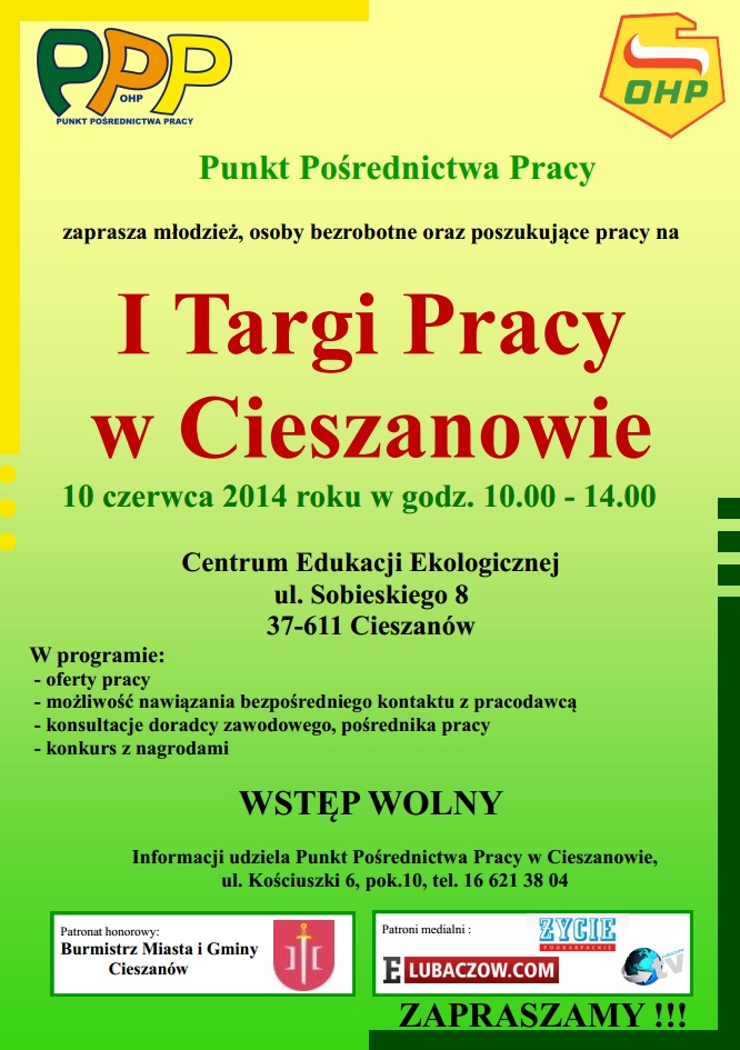 We wtorek I Targi Pracy w Cieszanowie Strona głównaCiekawostki 07.06.2014 5 Udział FacebookXWhatsAppWydrukowaćEmail fot. MCK w Cieszanowie Podobne wpisy W Lubaczowie odbędą się kolejne Targi Edukacji i Pracy 06.03.2019 W piątek ruszają Targi Edukacji i Pracy 12.03.2018 Rusza kolejna edycja Targów Edukacji i Pracy 02.04.2017 Szukasz pracy? Przyjdź na Targi Edukacji i Pracy w Lubaczowie 29.03.2016 Punkt Pośrednictwa Pracy OHP działający w Cieszanowie zaprasza we wtorek na I Targi Pracy. W trakcie spotkania oprócz zapoznania się z ofertami pracy, będzie można bezpośrednio porozmawiać z pracodawcami i doradcami zawodowymi. I Targi Pracy Frazytargi pracy 5 komentarze jak myslicie sa jakies oferty pracy czy znow trzeba unijna kase wydac bo zabiora??jak sie nia ma co robic tosie robi co sie da..;-) odpowiedz oferty są i to całkiem sporo…………warto skorzystać, zamiast płakać…. odpowiedz oczywiscie ze tak juz lece…poprosze o lin z tymi ofertami a uwierze 😉 odpowiedz Kto projektuje te plakaty ? Oczy aż pieką od patrzenia. odpowiedz oferty były- kto przyszedł- skorzystał odpowiedz zostaw odpowiedź anuluj Komentarz: Proszę wpisać swój komentarz! Nazwa:* Proszę podać swoje imię tutaj E-mail:* Wpisałeś nieprawidłowy adres e-mail! Wpisz tutaj swój adres e-mail Strona Internetowa: Zapisz moje nazwisko, adres e-mail i stronę internetową w tej przeglądarce na następny raz, gdy skomentuję. Nadchodzące wydarzeniaAktualny miesiąckwiecień 04kwi.14:0015:00Pogoń-Sokół Lubaczów - Sokół Kolbuszowa DolnaStadion Miejski 08kwi.09:0012:00Akcja krwiodastwaCKiS w Cieszanowie 09kwi.09:0013:00Dzień Otwarty PSSEPSSE w Lubaczowie 10kwi.10:0013:00I Podkarpacka Konferencja Lnu i KonopiZS CKR w Oleszycach 12kwi.09:0012:00Akcja krwiodastwaŚwietlica Wiejska w Horyńcu-Zdroju 12kwi.17:0019:00370. rocznica Ślubów LwowskichKonkatedra w Lubaczowie 21kwi.10:0012:00Konkurs kulinarny Slow FoodZS CKR w Oleszycach 24kwi.(kwi. 24)16:0026(kwi. 26)19:00XXVII Ogólnopolski Festiwal SłowaMDK w Lubaczowie 26kwi.10:0011:00IV Bieg Wielkoocki i Nordic WalkingWielkie Oczymaj 01maj10:0003(maj 3)18:00Wielka MajówkaGmina Lubaczówczerwiec 13cze.09:0011:00Cieszanowska DychaCieszanówlipiec 09lip.(lip. 9)15:0011(lip. 11)23:25Festiwal Folkowisko 2026Chutor Gorajecsierpień 21sie.(sie. 21)16:0023(sie. 23)23:59Cieszanów Rock Festiwal Zobacz pełny kalendarzNasz patronat Często czytane Nastolatkowie nagrywali zdarzenie w Wielkich Oczach? Decyzją sądu trafili do aresztu 02.04.2026 Zarzut zabójstwa dla 17-latków. Prokuratura chce aresztu 01.04.2026 Śmiertelne pobicie w Wielkich Oczach? Nie żyje 45-letni mężczyzna. Prokuratura wyjaśnia sprawę 31.03.2026 Lubaczów: Stracone miliony w Miejskim Targowisku, radny alarmuje 27.03.2026 Nieprzyjemny zapach w Lubaczowie i Oleszycach. To nie awaria sieci 20.03.2026
