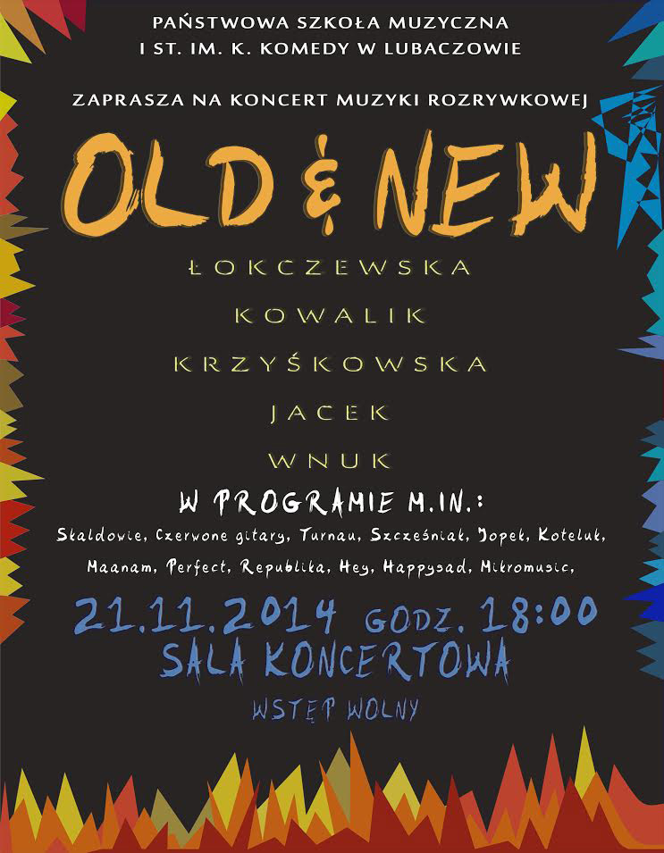 Państwowa Szkoła Muzyczna I stopnia im. Krzysztofa Komedy w Lubaczowie zaprasza w piątek na koncert muzyki rozrywkowej „Old & New”.