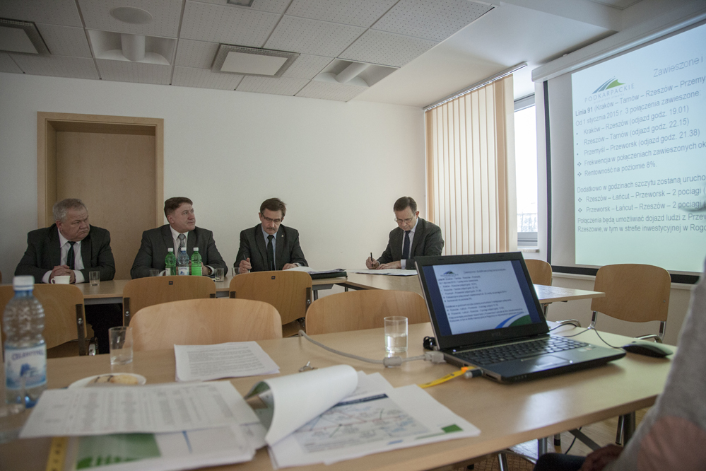 Do urzędu marszałkowskiego przyjechał starosta lubaczowski Józef Michalik oraz przedstawiciele miast i gmin, przez które przebiega linia kolejowa. Stronę samorządu województwa reprezentował również członek zarządu Lucjan Kuźniar oraz dyrektorzy Departamentu Dróg i Publicznego Transportu Zbiorowego Lesław Kornak i Jan Lech. Spotkanie dotyczyło ograniczeń kursowania szynobusu, które od początku roku wprowadził samorząd wojewódzki. Na linii Jarosław – Horyniec-Zdrój – Zamość zawieszono 10 połączeń, a utrzymano jedynie połączenia weekendowe. Władze wojewódzkie swoje działania argumentują niską średnią frekwencją na tej linii sięgającą 20-25 osób na pociąg oraz jej rentownością na poziomie 8 %.