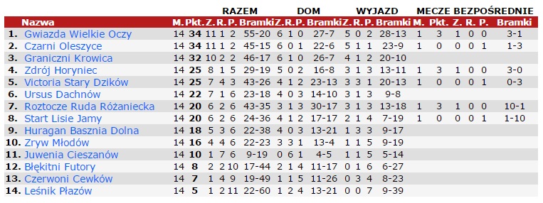 Większych problemów z zainkasowaniem kompletu punktów nie miały trzy najlepsze drużyny rundy jesiennej – Gwiazda Wielkie Oczy, Czarni Oleszyce i Graniczni Krowica, choć ci ostatni zwycięską bramkę strzelili z rzutu karnego dopiero w ostatnich minutach meczu. Ciekawy pojedynek, zakończony remisem 3:3, stoczyły zespoły Roztocza Ruda Różaniecka i Victorii Stary Dzików, .