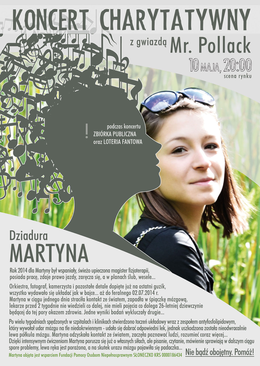 Martyna objęta jest wsparciem Fundacji Pomocy Osobom Niepełnosprawnym SŁONECZKO (KRS 0000186434). Dziewczynę można wspomóc również podczas tegorocznego Roztoczańskiego Międzynarodowego Maratonu Lubaczów-Jaworów. W trakcie trwania akcji charytatywnej zostanie przeprowadzona loteria fantowa i będę zbierane pieniądze, które wykorzystane zostaną na leczenie Martyny. W jej trakcie odbędzie się również licytacja, z której pieniądze trafią do Eli Woszczak. Otwórzmy swoje serca dla osób potrzebujących pomocy, wrzućmy pieniądze do puszek.