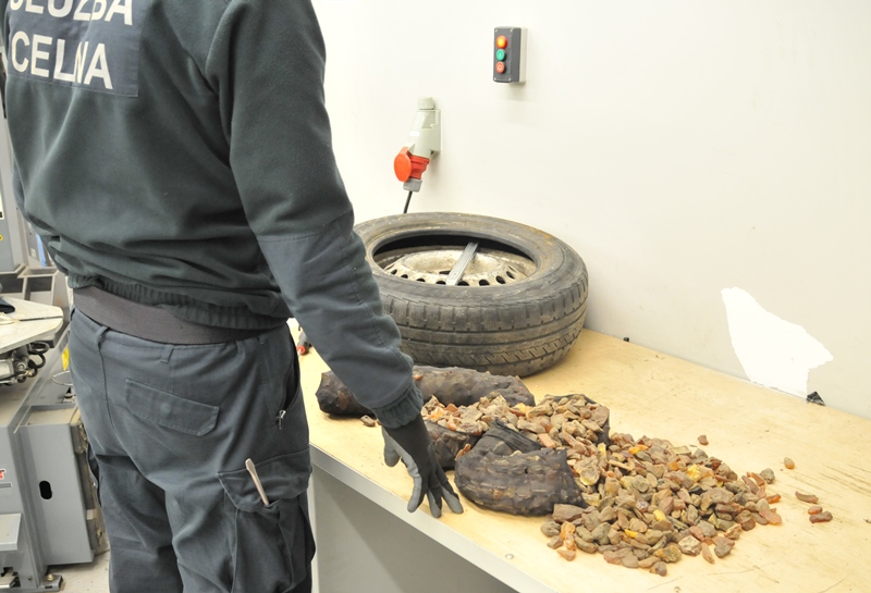 Do odprawy celnej zgłosili się dwaj obywatele Ukrainy, którzy zapewniali, że nic nie szmuglują. Celnicy postanowili jednak bliżej przejrzeć się ich pojazdom. Szybko okazało się, że mężczyźni nie mówili prawdy. Z ich pojazdów celnicy wyjęli łącznie 14 kg „złota Bałtyku”. 29-letni kierowca Volkswagena ukrył 6,45 kg cennych kamieni w kole zapasowym, natomiast 46-letni właściciel Opla schował bursztyn (7,60 kg) w progach pojazdu. Mężczyźni przyznali się do próby przemytu. Jak wyjaśnili później funkcjonariuszom chcieli w ten sposób szybko zarobić pieniądze. W zamian stracili towar i pieniądze, które wpłacili na poczet kar.