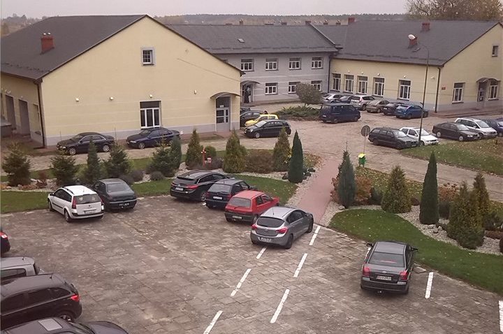 Kierowa osobowego opla jakby pomylił linie na placu przy Zespole Szkół w Lubaczowie?!