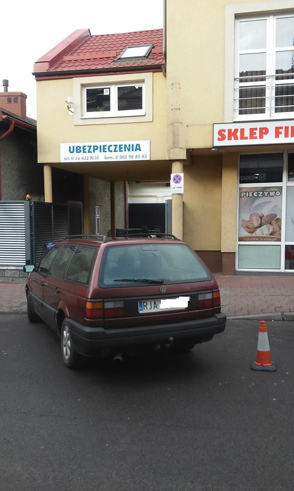 Kierowca volkswagena passata, nie zważając na ostrzeżenie odholowania, zastawił wjazd na posesję w centrum Lubaczowa.