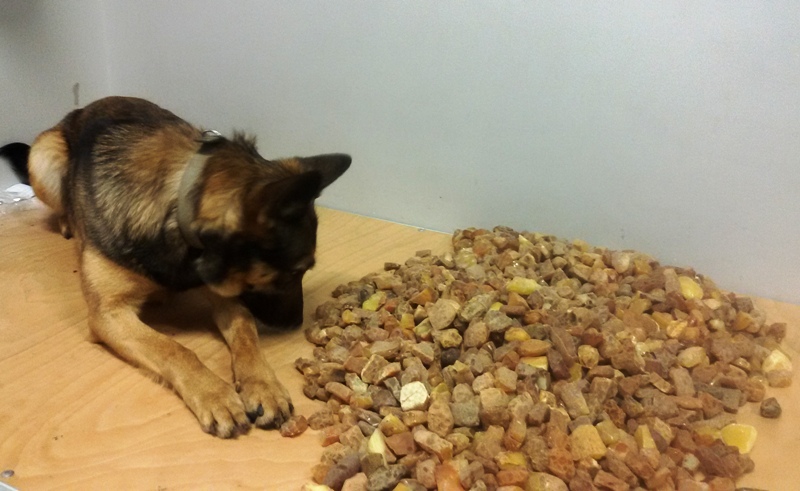 Ponad 11 kg nieoszlifowanego bursztynu próbował przemycić przez granicę 26-letni obywatel Ukrainy. Kontrabandę, na polsko-ukraińskim przejściu granicznym w Budomierzu, minionej nocy wyczuła Vera.