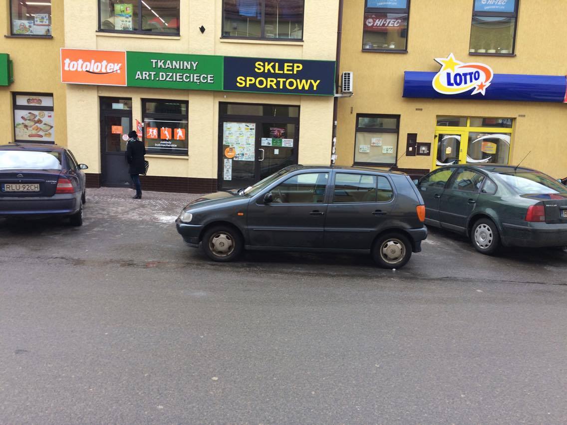 Trzy miejsca parkingowe zajął kierowca volkswagena polo, który zostawił swoje auto pod marketem „Domus” w Lubaczowie. W okresie przedświątecznym, kiedy o wolne miejsca parkingowe naprawdę trudno, takich kierowców oby jak najmniej!