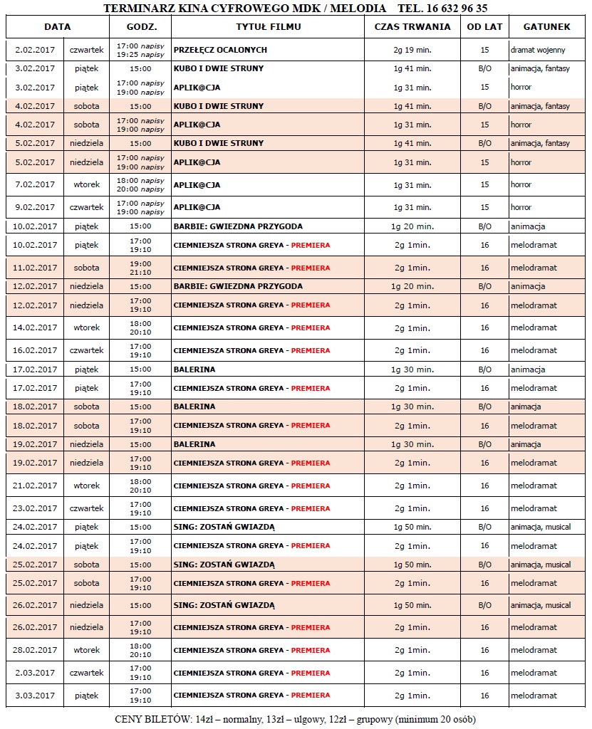 Pełny terminarz kina MDK w Lubaczowie na luty br.