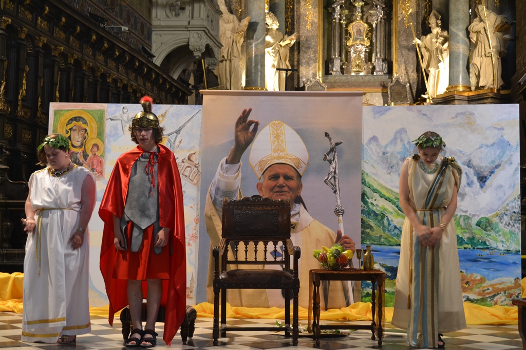 Dzieci i młodzież wystąpili ze spektaklem „Przecież nie cały umieram. To, co we mnie niezniszczalne trwa” opowiadającym o przełomowych momentach w życiu Karola Wojtyły. Inscenizację przygotowali nauczyciele z wychowankami pod kierunkiem pani Elżbiety Garus. Występ został entuzjastycznie przyjęty przez licznie zgromadzonych biskupów i księży oraz biorących udział w uroczystościach Polaków mieszkających we Lwowie.