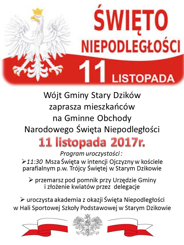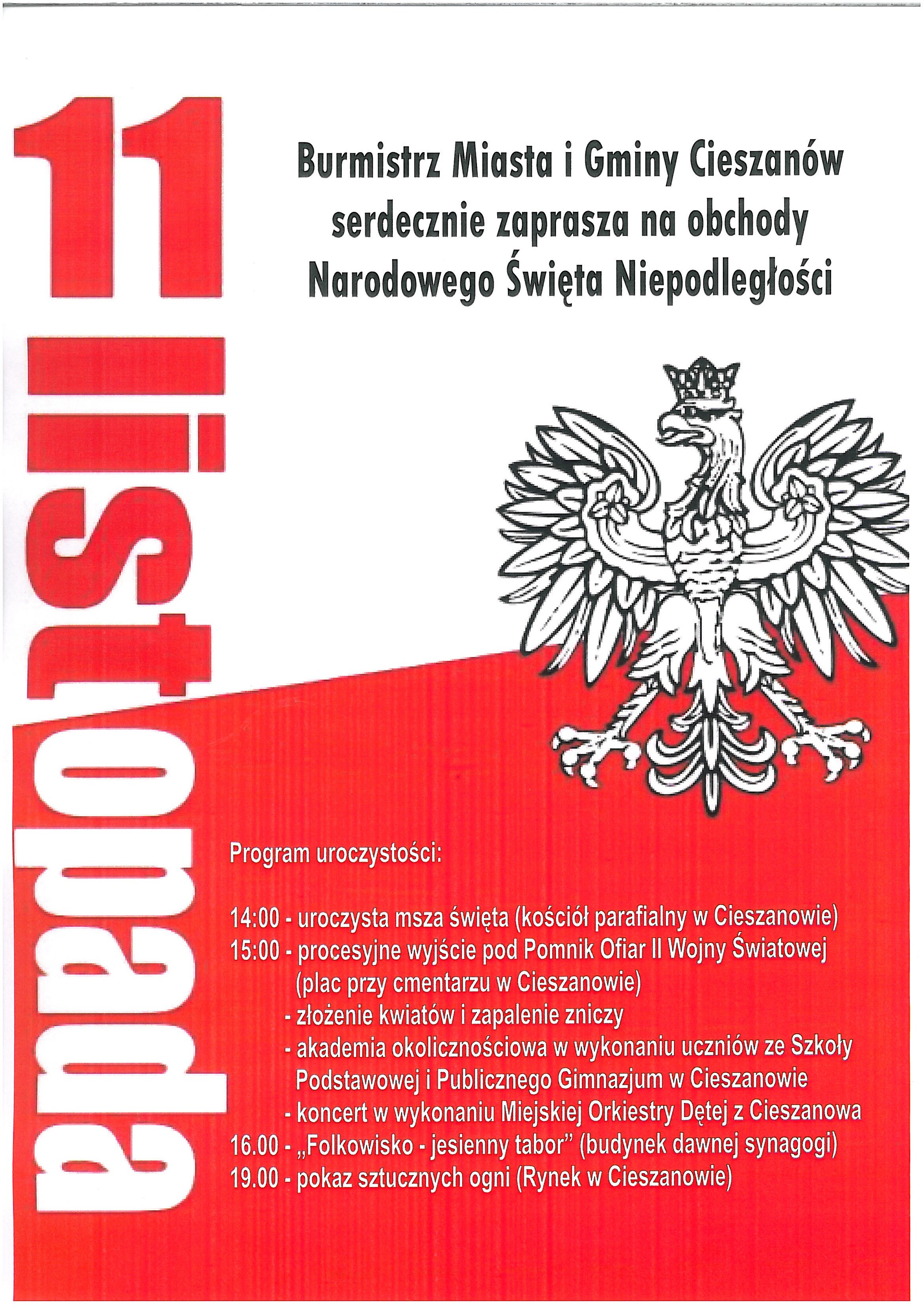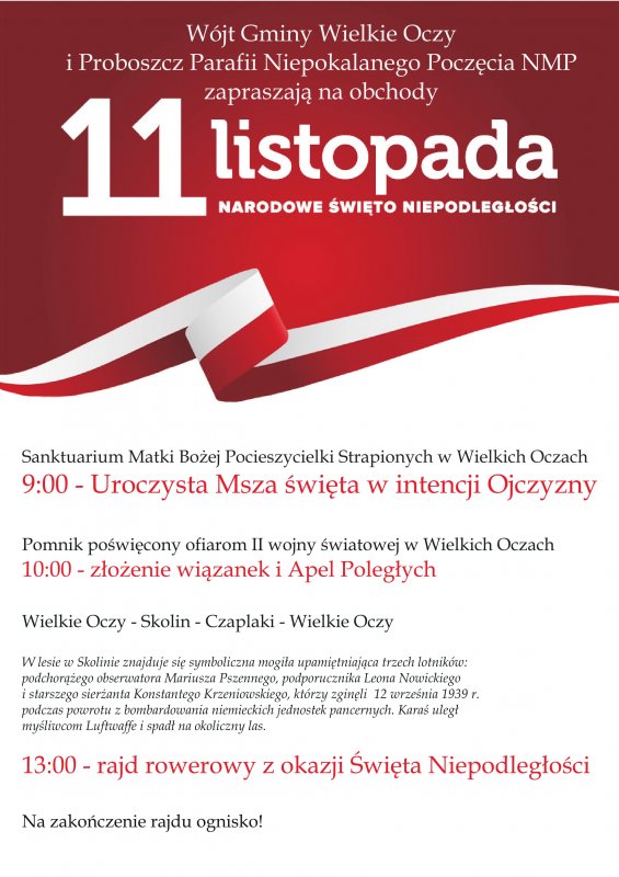10:30 – Koncert Piosenki Patriotycznej i Żołnierskiej – hala widowiskowo – sportowa przy Szkole Podstawowej im. Jana Pawła II w Oleszycach „Wspólnie śpiewamy dla Tej, co nie zginęła”