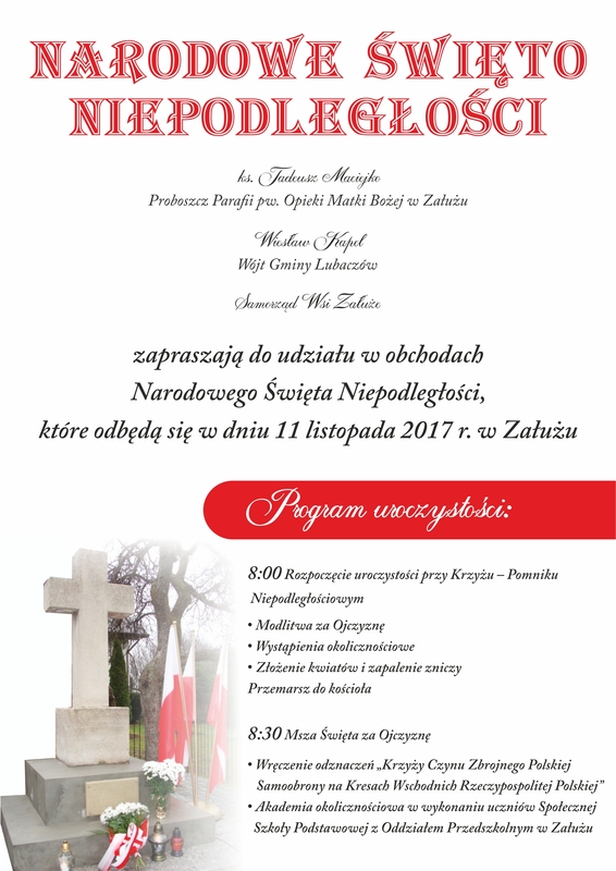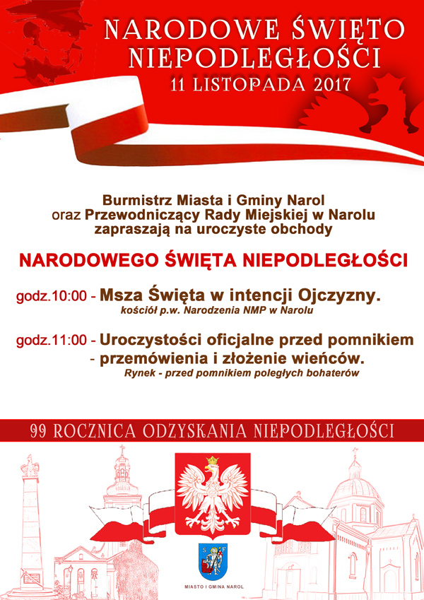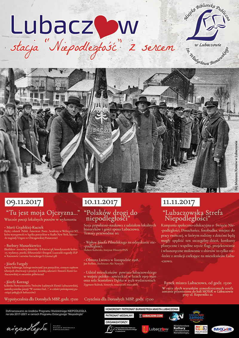 Już jutro (tj. 11 listopada 2017r.) odbędą się obchody 99. rocznicy odzyskania przez Polskę niepodległości. Święto będzie obchodzone w całym kraju, również w powiecie lubaczowskim. Przygotowaliśmy dla Was program uroczystości z podziałem na miasta i gminy znajdujące się na obszarze powiatu.