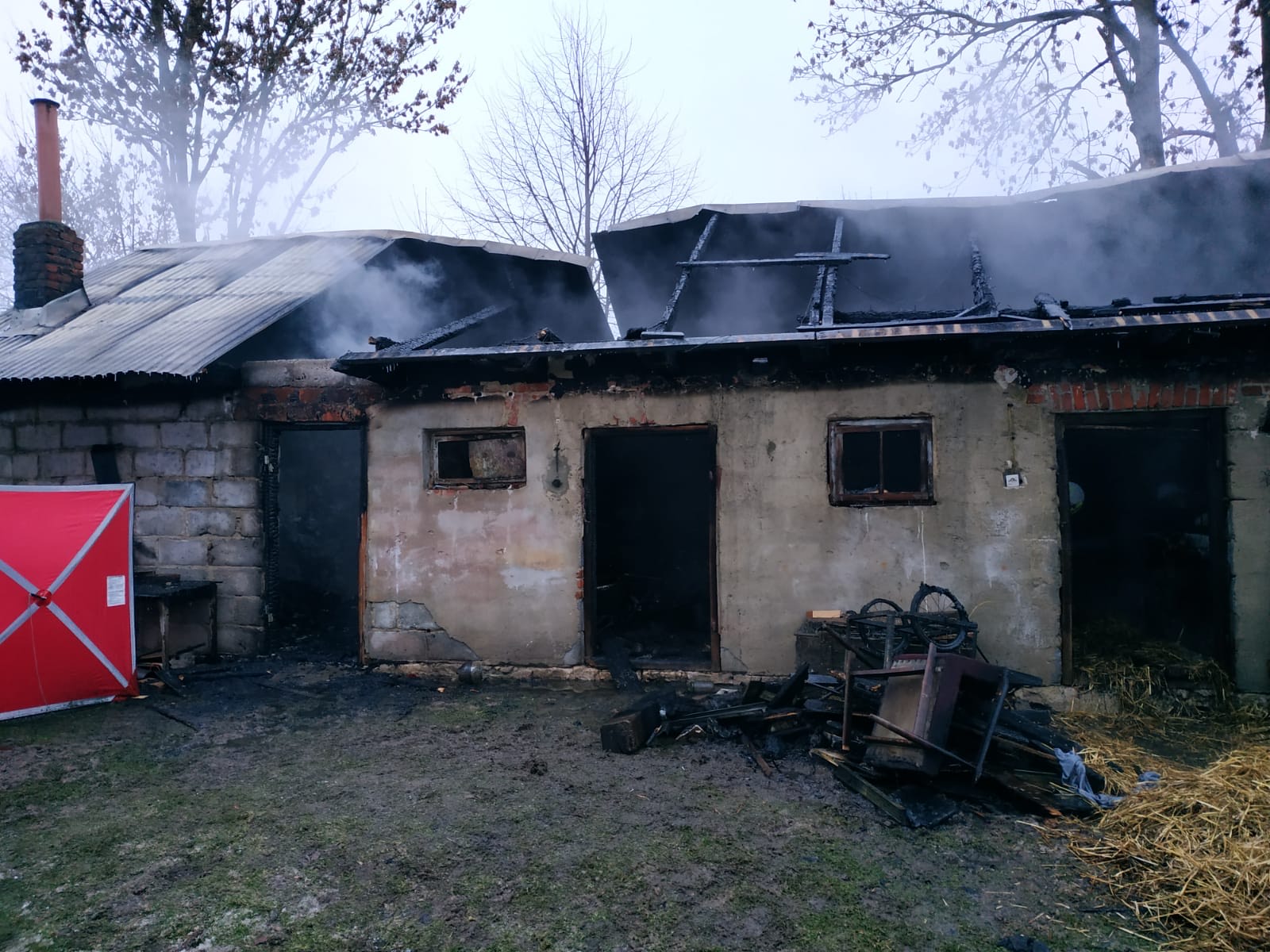 Informację o płonącym budynku strażacy odebrali w środę około około godz. 4:30. Z informacji świadków wynikało, że pali się częściowo murowany budynek gospodarczy z dobudowaną kuchnią. Na miejsce zadysponowano 6 zastępów PSP i OSP.