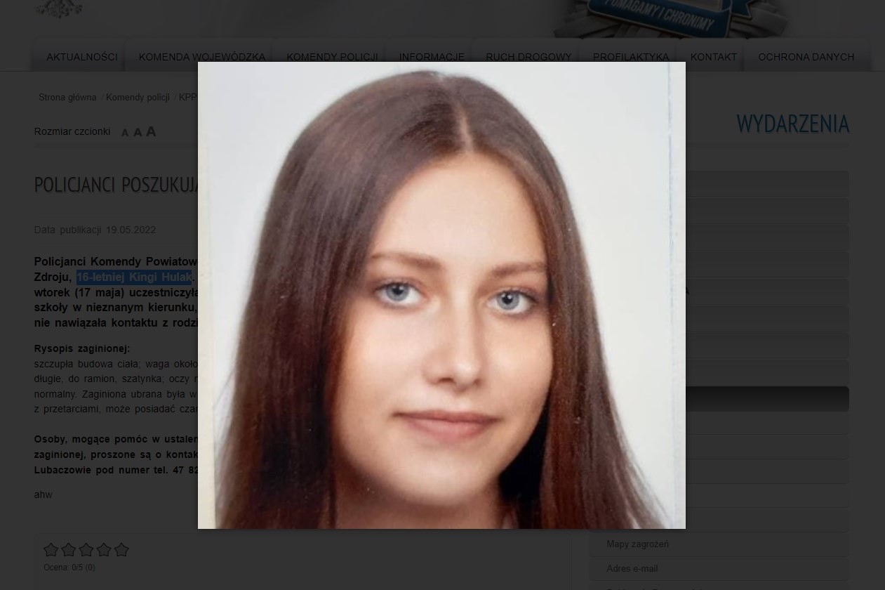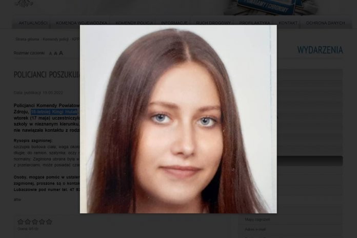 Policjanci Komendy Powiatowej Policji w Lubaczowie poszukują zaginionej mieszkanki Horyńca Zdroju, 16-letniej Kingi Hulak. Zaginiona jest uczennicą Liceum Katolickiego w Jarosławiu.