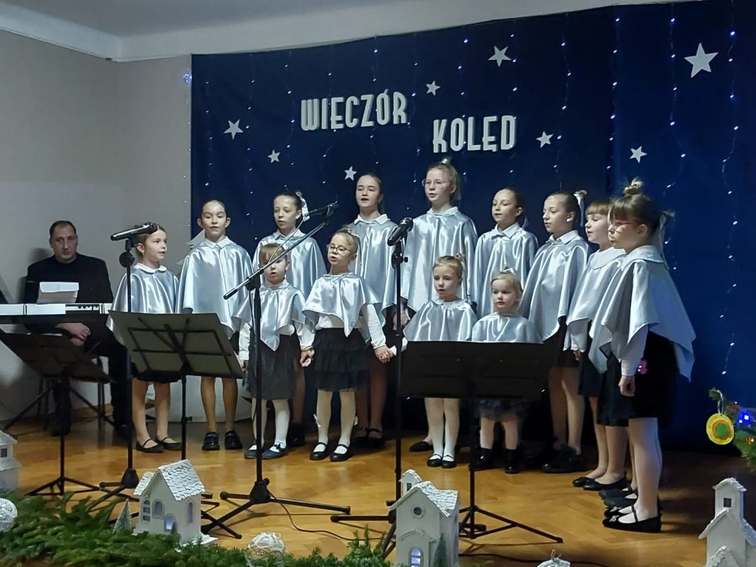Na scenie zaprezentowali się wykonawcy z Klubu Seniora z Baszni Dolnej oraz zespół Iskierki, którzy wykonali tradycyjne kolędy i pastorałki. Ich występy spotkały się z życzliwym przyjęciem publiczności, a wspólne śpiewanie wprowadziło uczestników w świąteczny nastrój. W kolędowaniu udział wzięli przedstawiciele samorządu – obecny był m.in. Wójt Gminy Wiesław Kapel, radni gminni i powiatowi oraz mieszkańcy.