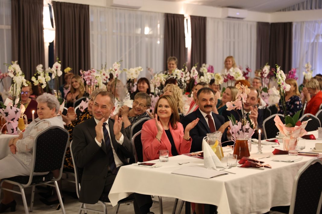 Gospodarz spotkania, wójt Wiesław Kapel, w swoim wystąpieniu zwrócił uwagę na kluczową rolę kobiet w rozwoju gminy. Dziękował im za codzienną pracę zawodową, zaangażowanie społeczne oraz nieocenioną troskę o rodzinę. Do życzeń zdrowia i satysfakcji przyłączyły się parlamentarzystki, które podkreślały rosnące znaczenie aktywności kobiet w życiu publicznym. Ważnym punktem wieczoru był gest wdzięczności ze strony panów – wójt wraz z przewodniczącym Rady Gminy Romanem Cozacem wręczyli każdej z obecnych pań kwiaty oraz okolicznościowe podziękowania.
